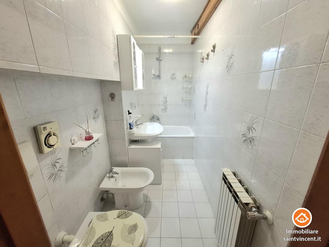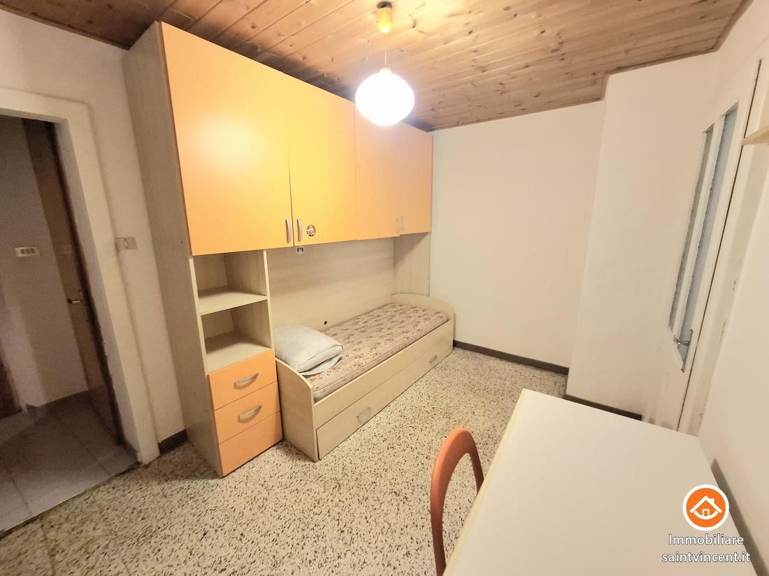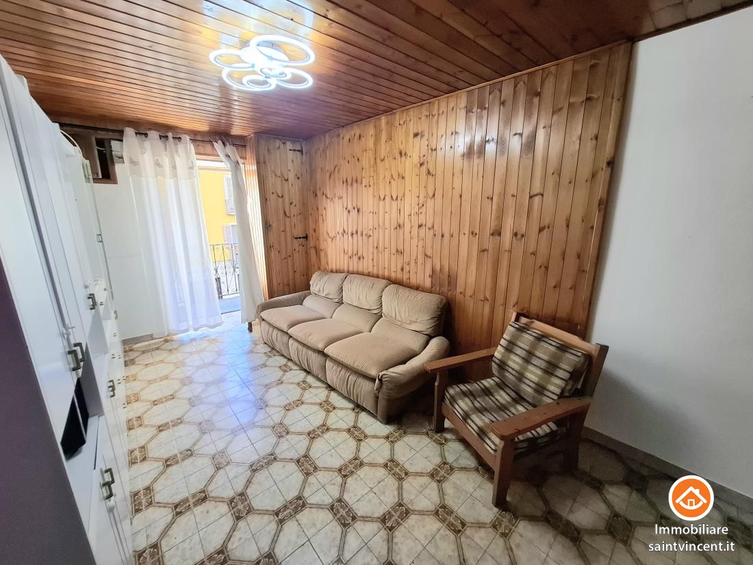 Pont-Saint-Martin: nel centro storico del paese, in ottima posizione comoda a tutti i principali servizi, appartamento al secondo piano composto da cucina abitabile, soggiorno, camera matrimoniale, cameretta/cabina armadi, servizio con vasca, ripostiglio esterno con attacco per la lavatrice e balcone esposto a sud che da sulla via principale del paese.