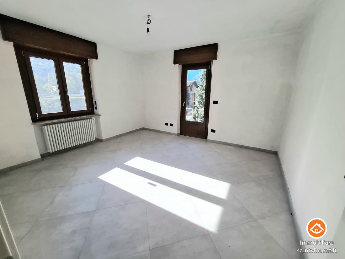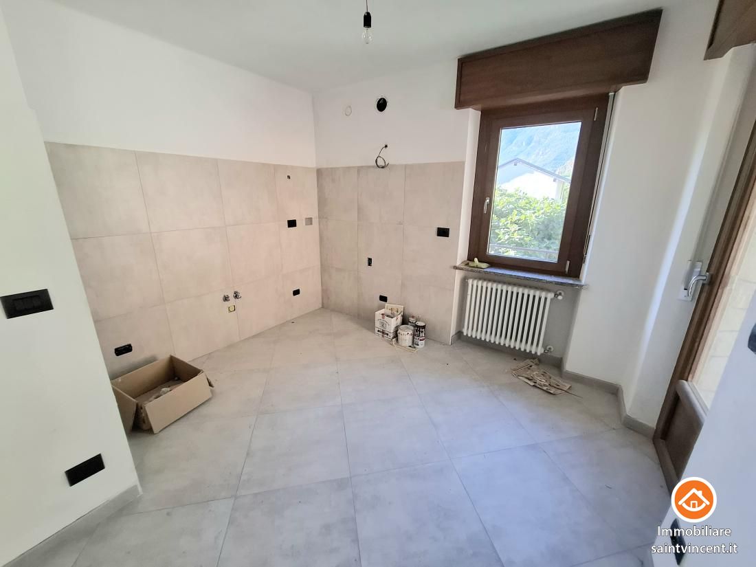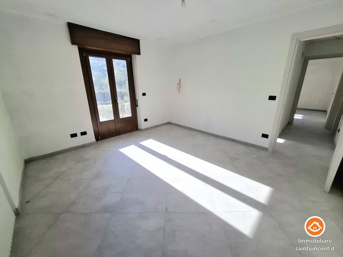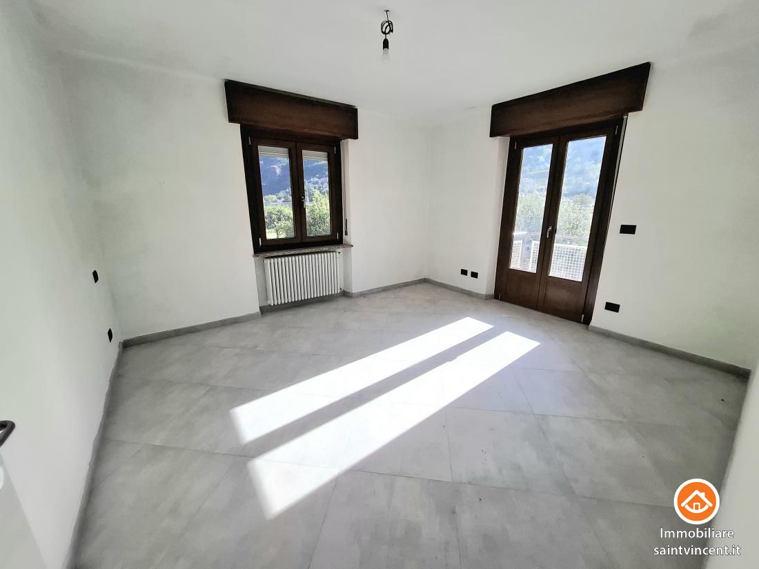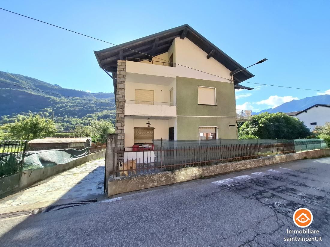 Montjovet: in casa bifamiliare, alloggio al primo piano completamente ristrutturato composto da ingresso, angolo cottura con soggiorno, tre camere matrimoniali, cameretta, servizio finestrato con doccia e quattro balconi. Completano la proprietà un garage doppio di circa 33 mq con corte esterna da utilizzare come posti auto, ampia mansarda di circa 120 mq e cantina al piano interrato. Riscaldamento autonomo a gpl.