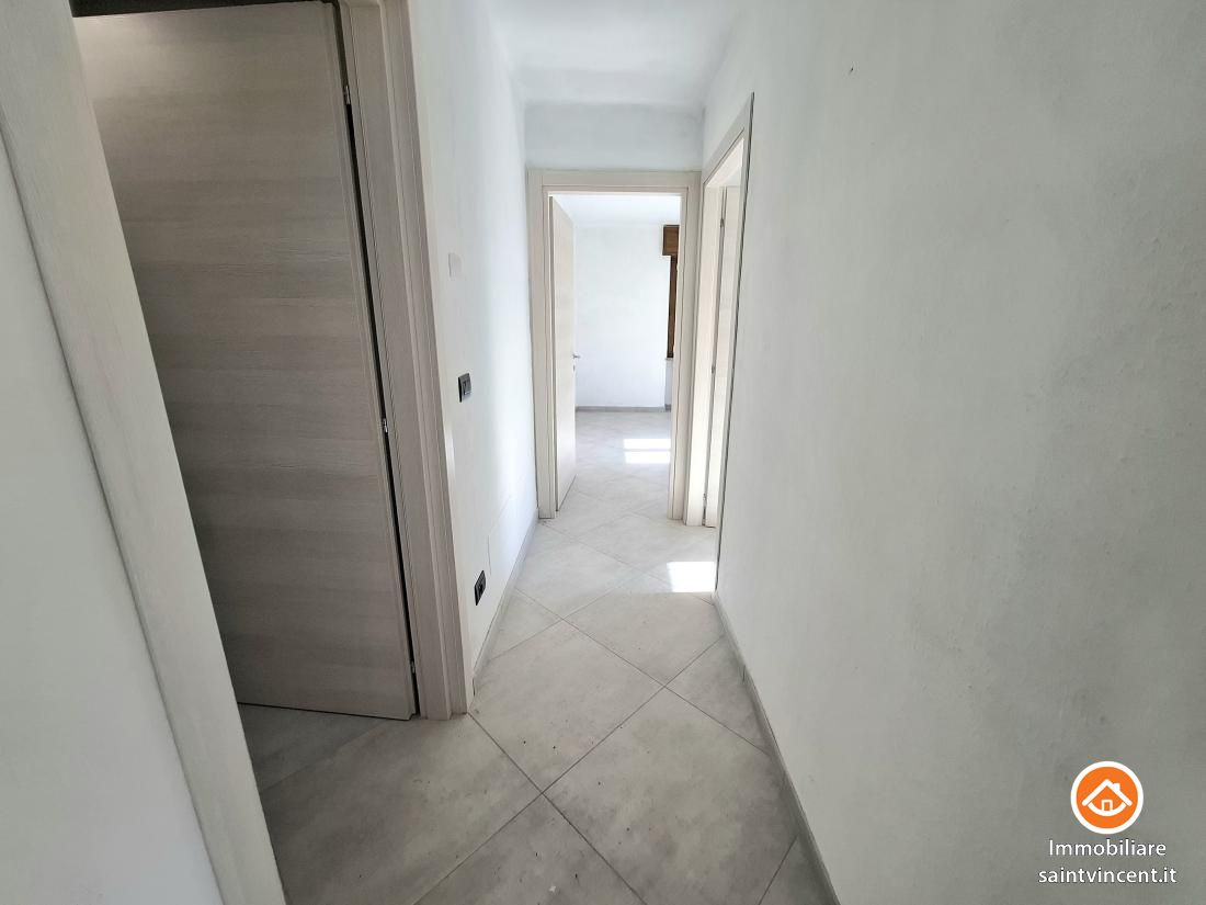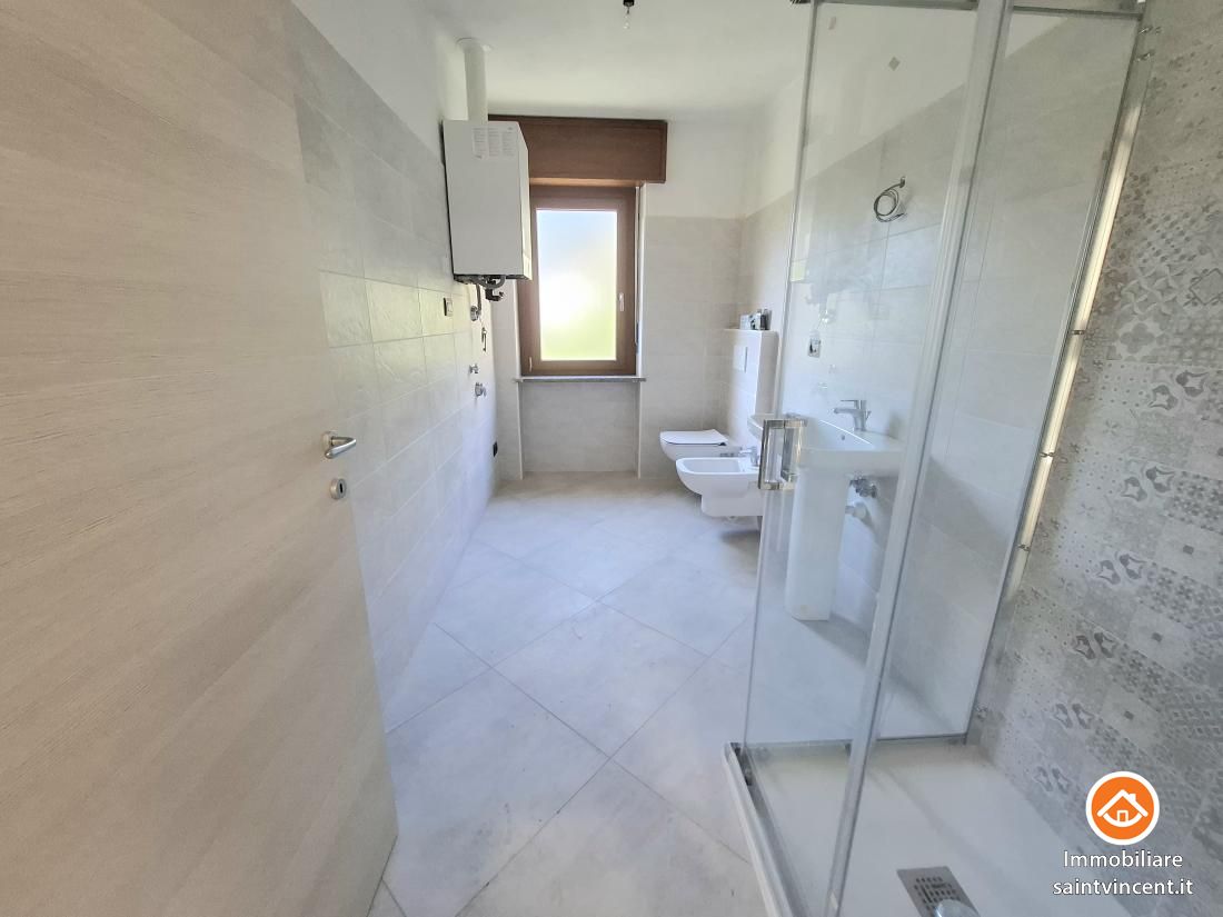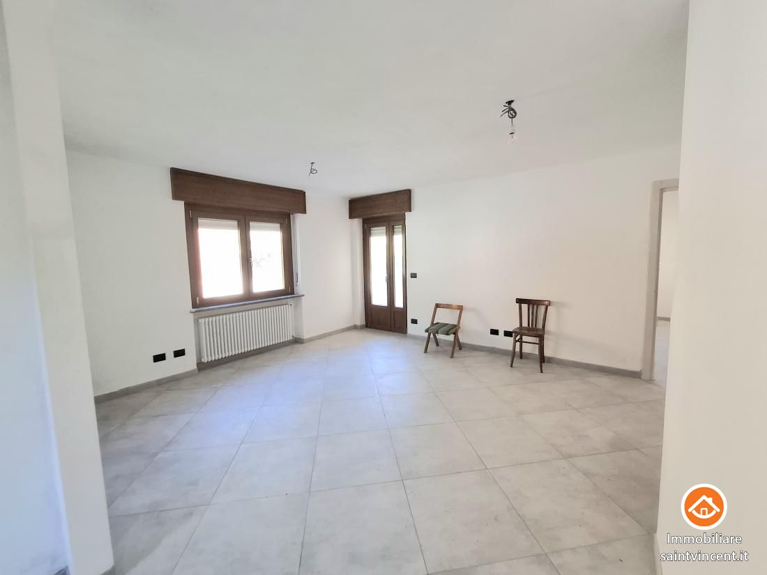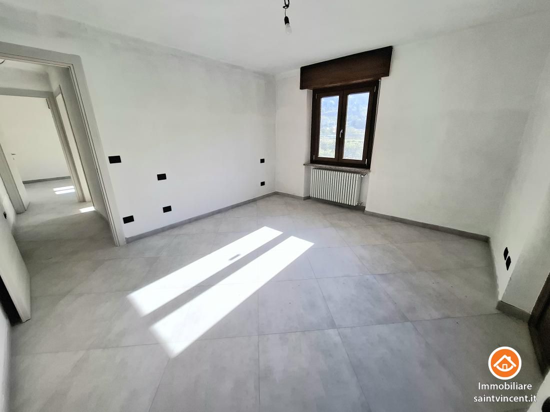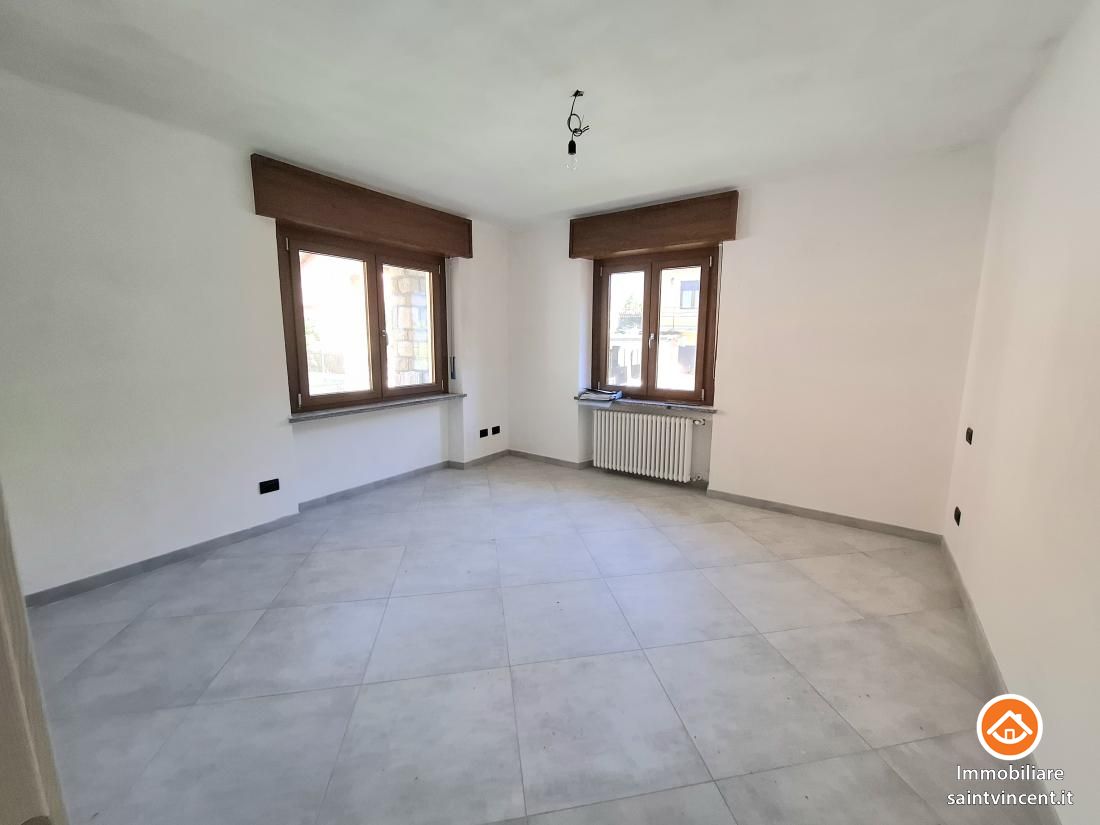 Montjovet: in casa bifamiliare, alloggio al primo piano completamente ristrutturato composto da ingresso, angolo cottura con soggiorno, tre camere matrimoniali, cameretta, servizio finestrato con doccia e quattro balconi. Completano la proprietà un garage doppio di circa 33 mq con corte esterna da utilizzare come posti auto, ampia mansarda di circa 120 mq e cantina al piano interrato. Riscaldamento autonomo a gpl.