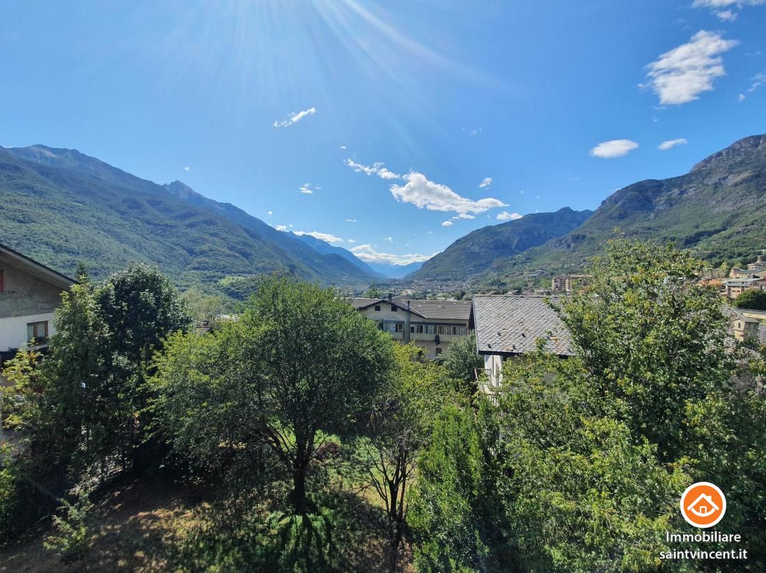 Saint-Vincent: in piccola palazzina, poco distante dal centro, appartamento al secondo piano composto da ingresso, ampia zona giorno con angolo cottura, 3 camere, servizio con vasca e 2 ampie balconate. Completo di canina e spazioso garage. Termo semi autonomo con termo valvole. Arredato di cucina, camera matrimoniale e divano nel soggiorno. Libero da Febbraio 2026.