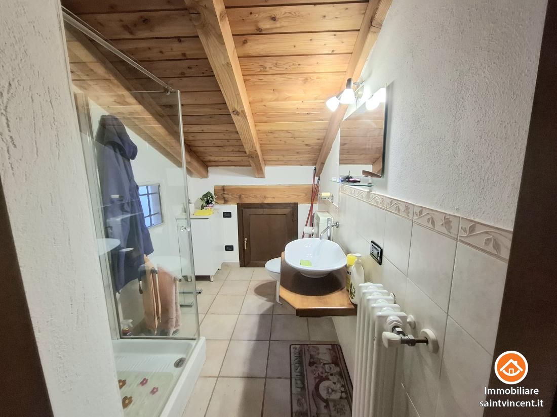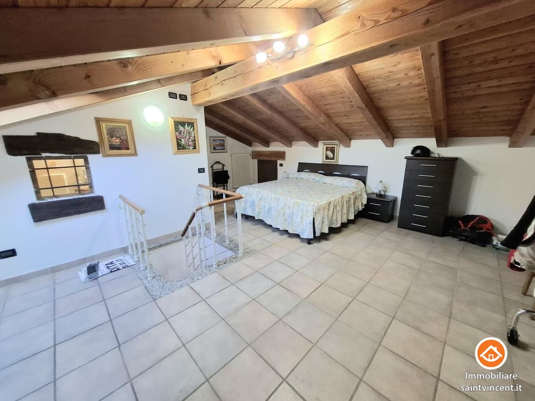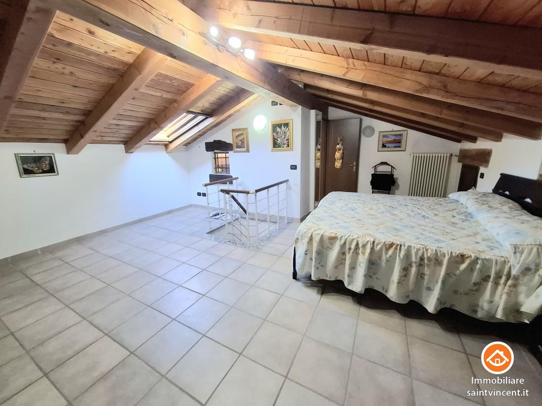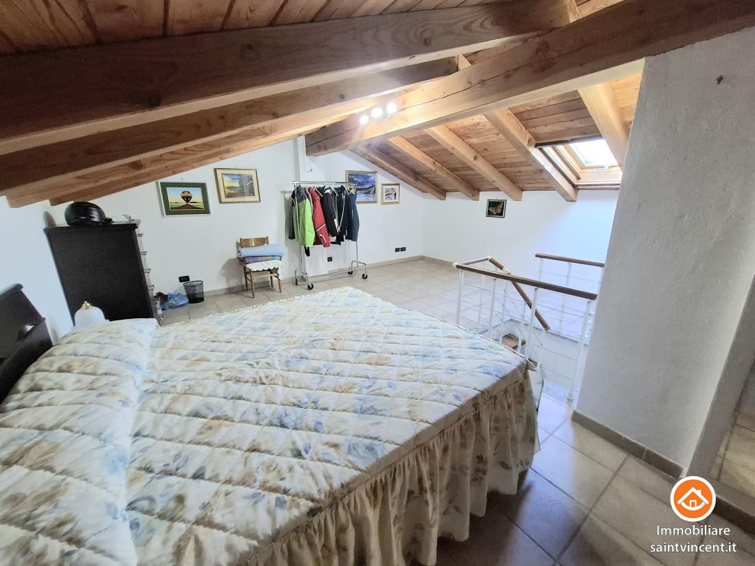 Chatillon: in Località Soleil, in palazzina quadrifamiliare priva di costi condominiali, proponiamo in vendita, appartamento al secondo ed ultimo piano. L'alloggio apre sull'ingresso, il quale conduce alla zona giorno con angolo cottura esposta a sud ovest ed impreziosita dal balcone panoramico. Le due camere da letto sono entrambe luminose e di buone dimensioni ed il servizio si presenta finestrato e funzionale. Al piano superiore collegato da una comoda scala a chiocchiola è presente una mansarda adibita a terza camera matrimoniale con annesso un servizio. Nella zona più bassa della mansarda sono presenti due ampi ripostigli. L'offerta comprende inoltre due cantine al piano terra e due posti auto in uso esclusivo in cortile chiuso da cancello automatizzato. Termo autonomo a gpl. Ottima occasione! L'immobile viene venduto completo di arredi.