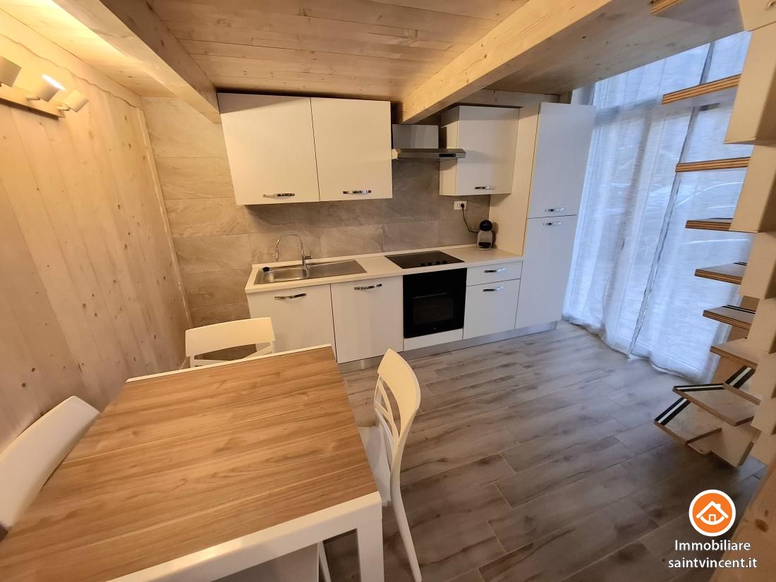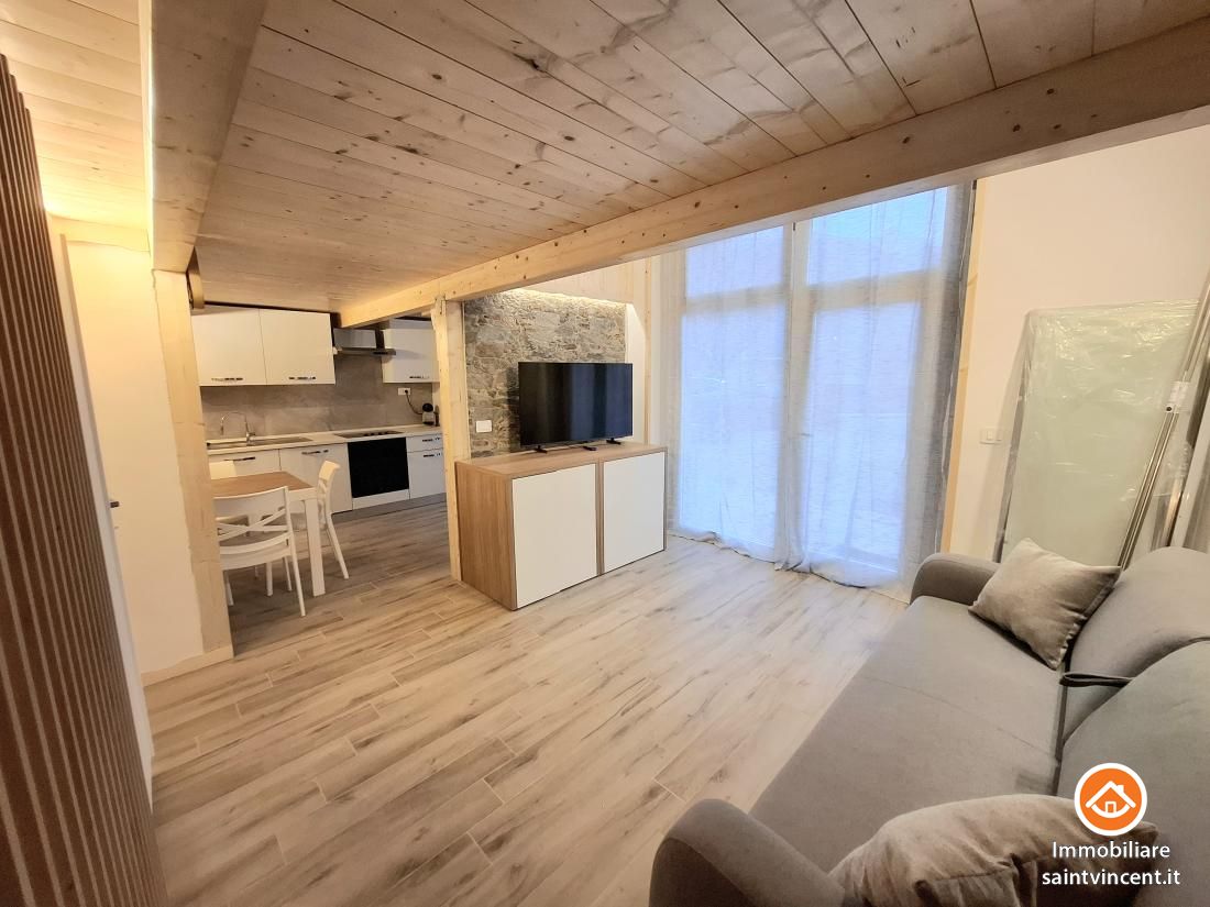 Saint Vincent: a ridosso del centro, proponiamo in locazione appartamento completamente ristrutturato al piano terra del condominio Cristallo. L'unità immobiliare è composta da cucina abitabile, soggiorno, servizio e ampio soppalco con letto matrimoniale e deposito. Termo semi autonomo con termo valvole. Completamente arredato con mobili nuovi. SI RICHIEDE CONTATTO SOLO TRAMITE MAIL.