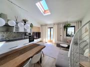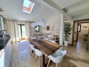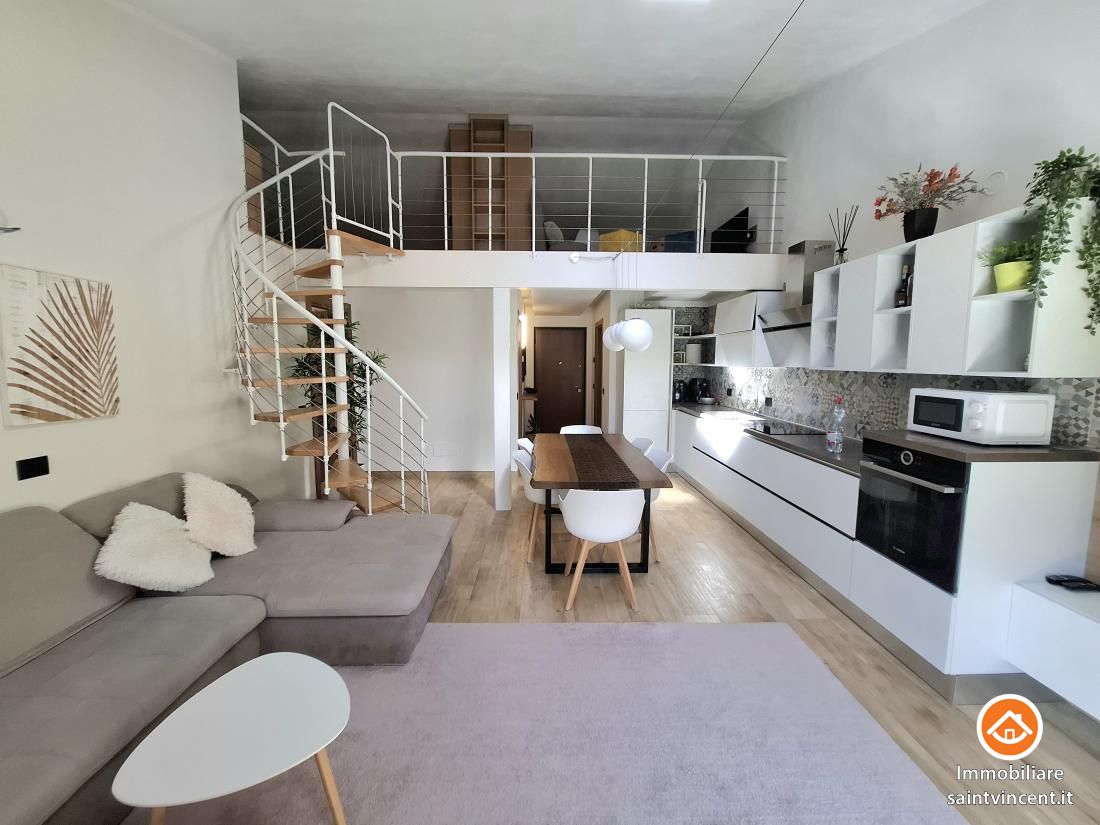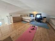 L'immobile si compone di un'ampia zona giorno con angolo cottura, due camere da letto, doppi servizi e un ripostiglio adibito a cabina armadio. Il soppalco, con altezze sfruttabili, è stato convertito in una terza camera con salotto, offrendo ulteriore spazio abitabile. La zona giorno e le camere dispongono di accesso diretto ad una balconata con splendida vista panoramica, dalla quale si raggiunge una terrazza vivibile e un’area verde di 54 mq ad uso esclusivo, ideale per godere della tranquillità del contesto collinare.