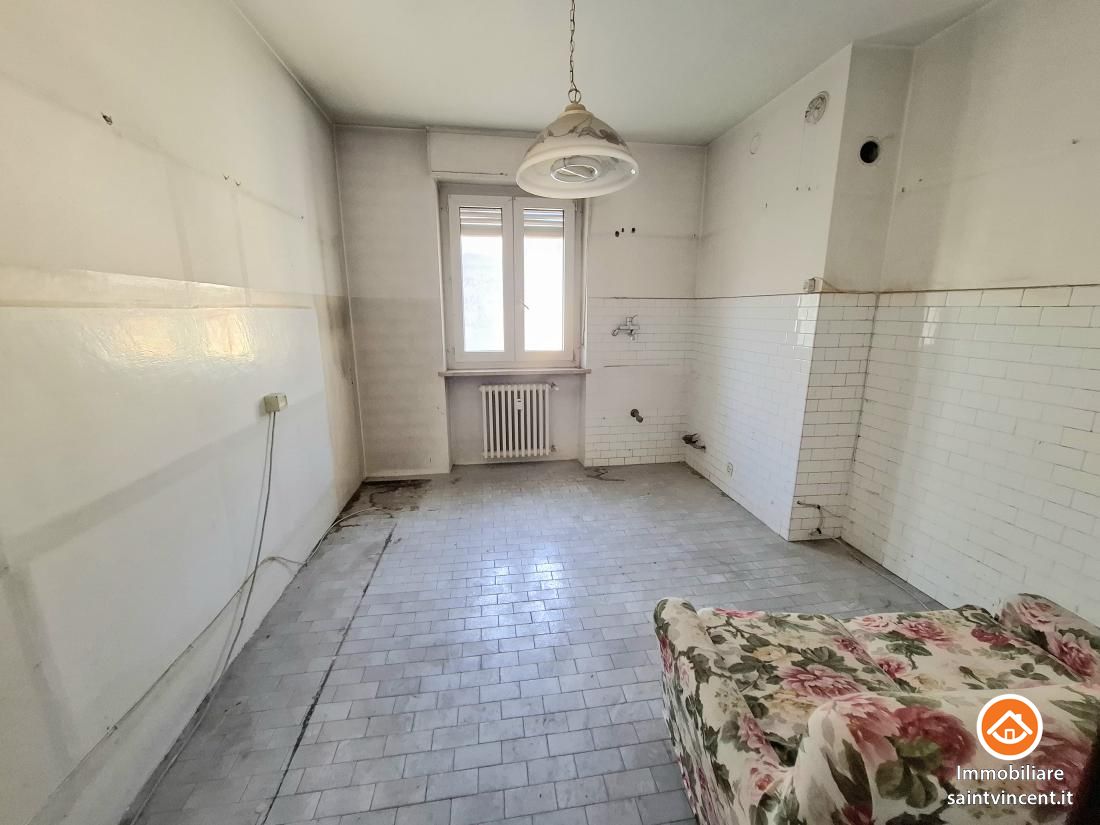 Chatillon: in Via Martiri della Libertà, in zona poco distante dal centro, alloggio al secondo piano fuori terra composto da ingresso, cucina abitabile, soggiorno, due spaziose camere da letto, servizio, ripostiglio e due balconi. Completo di ampia cantina al piano interrato e posto auto esterno condominiale. Riscaldamento semi autonomo a gasolio con conta ore.