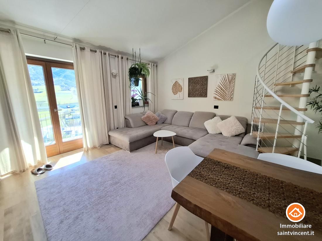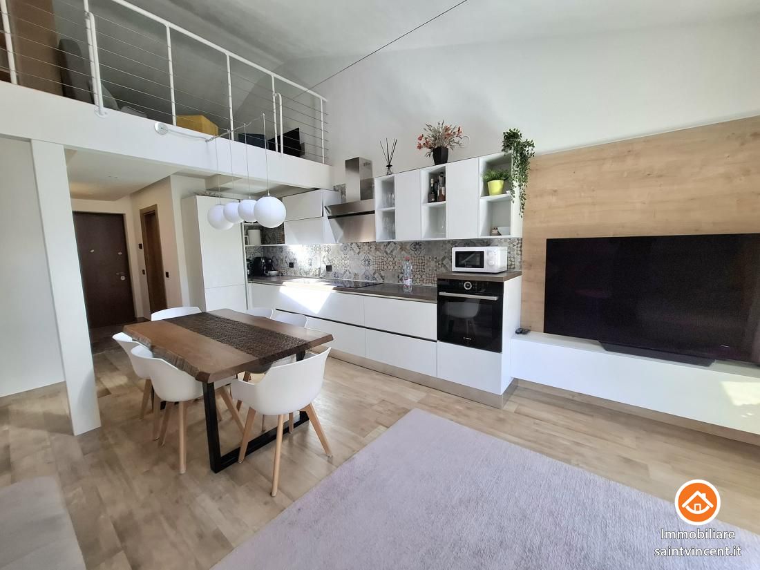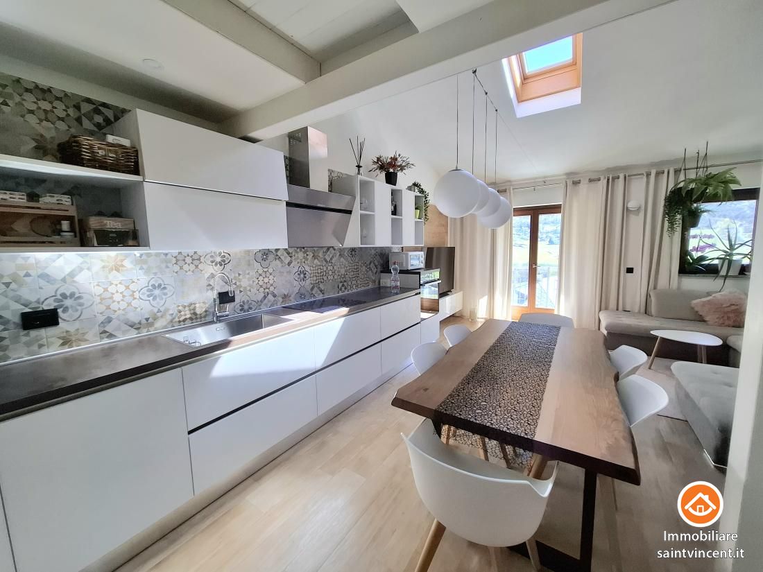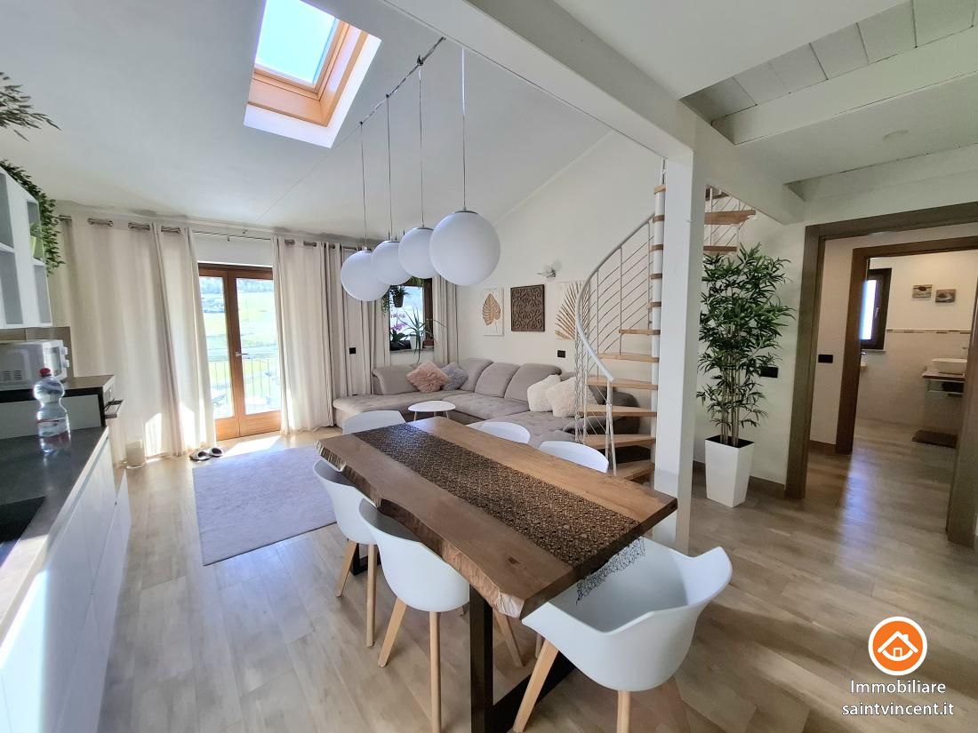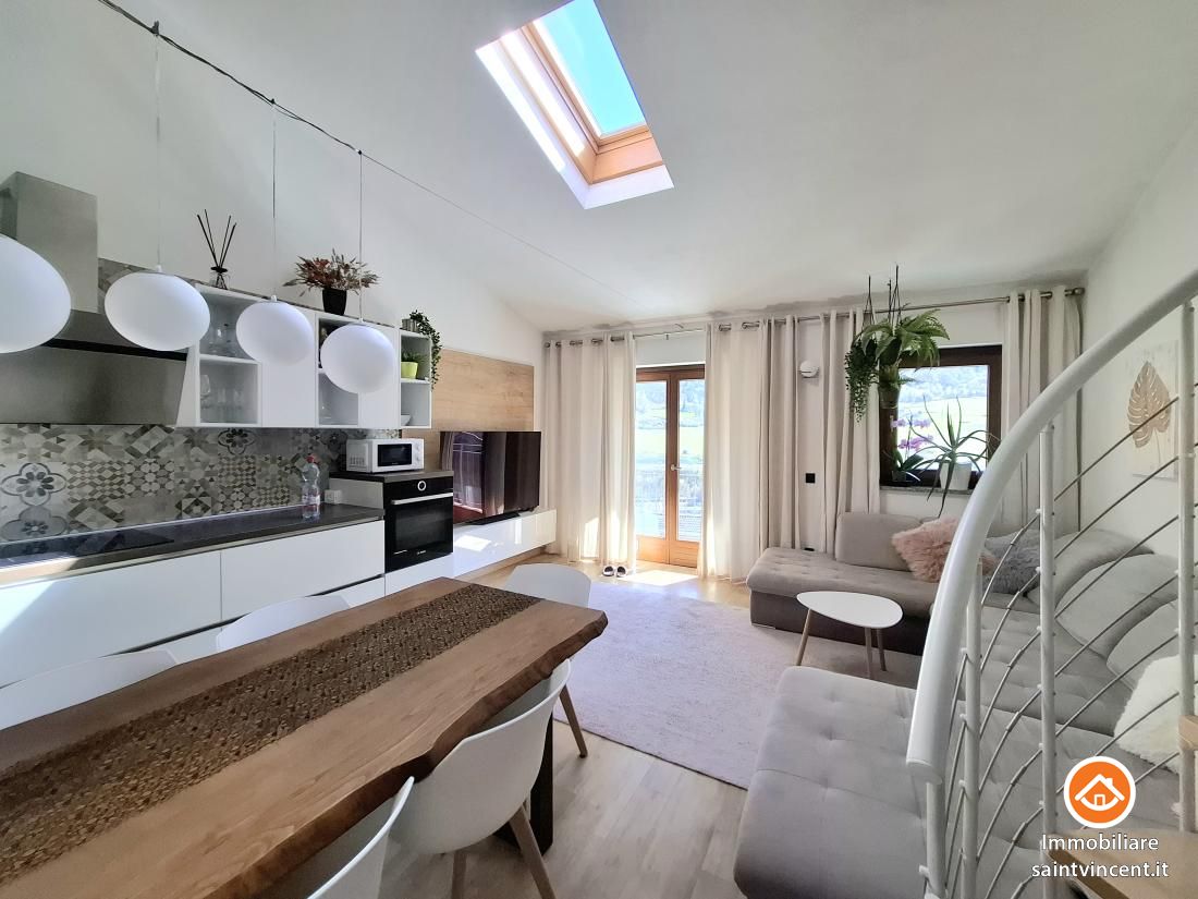 Chambave: in palazzina di sole quattro unità abitative, recentemente edificata e progettata secondo elevati standard di efficienza energetica, proponiamo un esclusivo appartamento situato al primo e ultimo piano raggiungibile con ascensore, libero sui lati sud e ovest. L'edificio è dotato di un avanzato sistema di isolamento termico a cappotto, che assicura un'elevata coibentazione, oltre a pannelli solari e un impianto di riscaldamento a pavimento autonomo per ciascuna unità, garantendo un comfort abitativo ottimale.