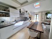 L'immobile si compone di un'ampia zona giorno con angolo cottura, due camere da letto, doppi servizi e un ripostiglio adibito a cabina armadio. Il soppalco, con altezze sfruttabili, è stato convertito in una terza camera con salotto, offrendo ulteriore spazio abitabile. La zona giorno e le camere dispongono di accesso diretto ad una balconata con splendida vista panoramica, dalla quale si raggiunge una terrazza vivibile e un’area verde di 54 mq ad uso esclusivo, ideale per godere della tranquillità del contesto collinare.
